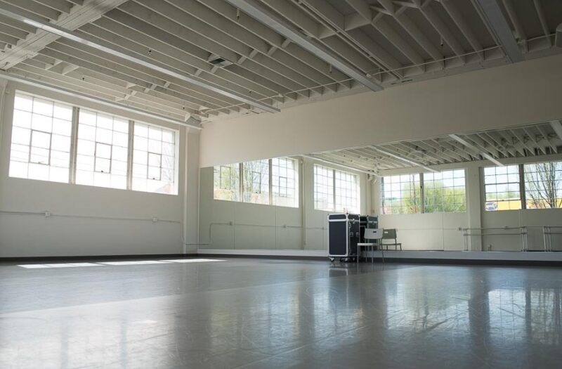 Located in the heart of Portland’s booming central east side (within walking distance of area cafes, restaurants, and hotels), NW Dance Project‘s beautiful and bright ADA-compliant Creative Center is a community resource available to individuals and groups. Available spaces include a spacious, light-filled professional dance studio; a welcoming open lobby; changing areas; upgraded restrooms; a full kitchen; a private conference room (details below), and more.